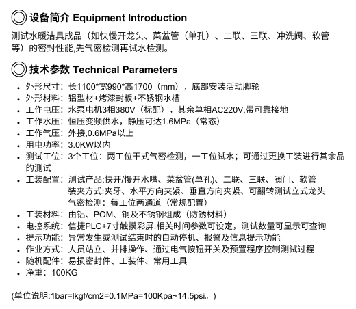 水嘴水、气密封测试系列
